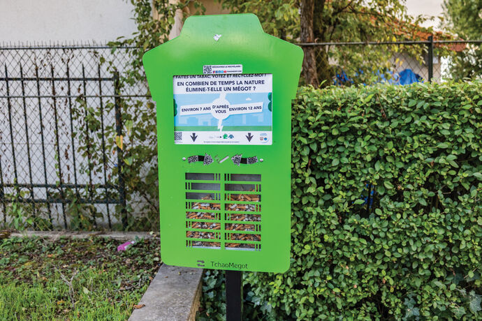Une raison de plus de jeter son mégot dans un cendrier ! Depuis 2023, la start-up française TchaoMegot récupère le contenu des 25 cendriers implantés sur la commune, et enlève dans un premier temps les matières recyclables : le tabac et le papier.