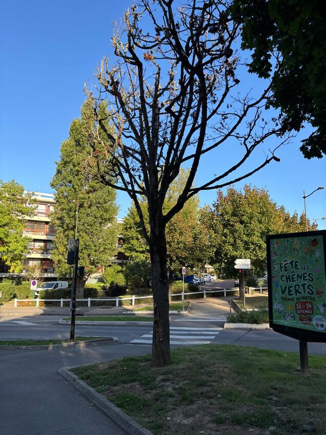 Action de la Ville : remplacement à l’identique, permettant de garder l’alignement avec les autres arbres.