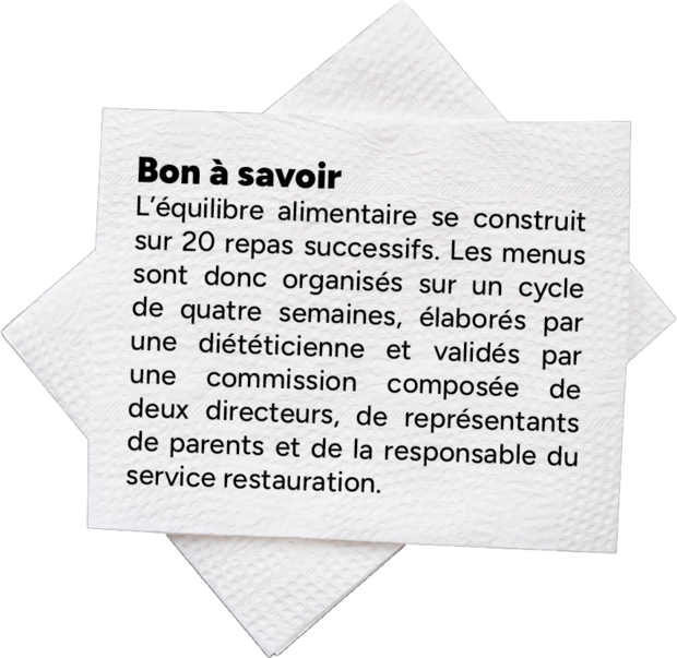 Bon à savoir : Le personnel est formé aux normes HACCP (principes de l’hygiène alimentaire en restauration) et au respect strict de la chaîne du froid et des protocoles sanitaires. La Ville enrichit ses repas avec des produits issus de l’agriculture biologique et des viandes bénéficiant de labels de qualité.