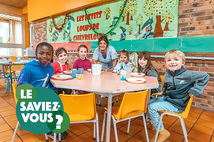 L’info en plus : Dans les cantines, le tri des déchets est systématique : les restes alimentaires sont acheminés vers une unité de méthanisation afin de produire du biogaz.