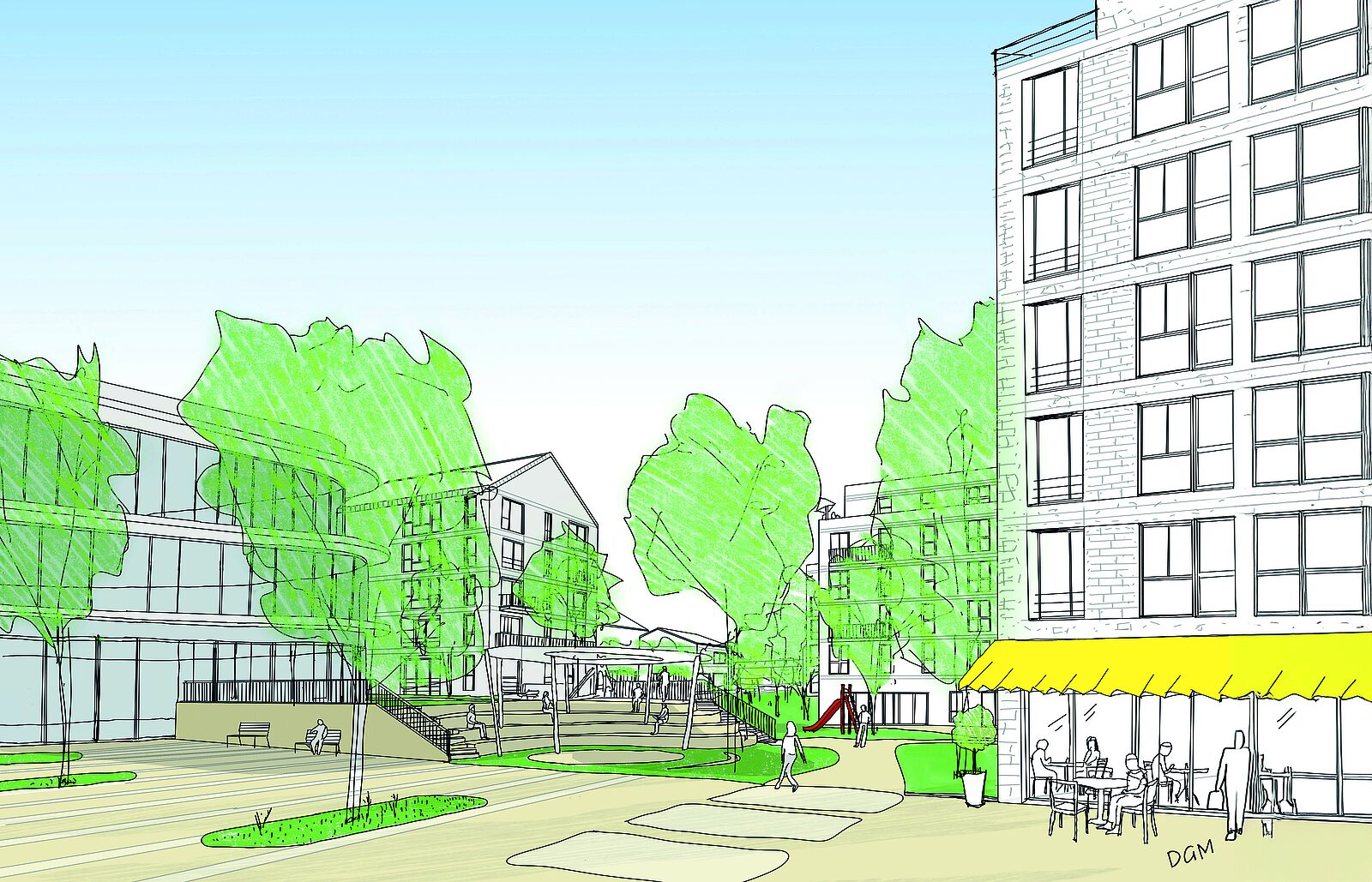 Des espaces publics repensés, en tenant compte de la topographie du site.