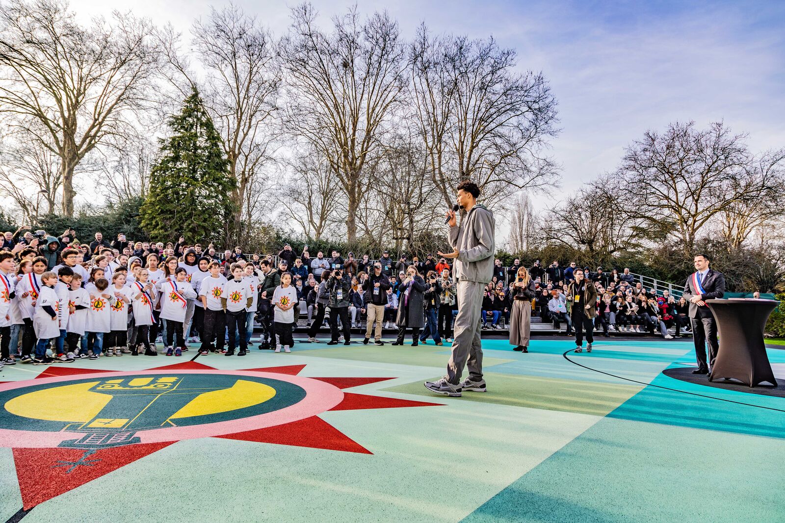 21 janvier 2025 : Inauguration officielle avec 500 invités et la Presse française. Réhabilitation réussie du terrain existant et création d'un nouveau terrain 3x3, avec gradins, éclairage, et accès facilité.