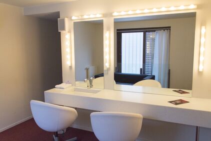 3 loges individuelles – 1 loge de changement rapide - 2 loges “Prestige” – 2 studios de répétition – 1 buanderie – 1 espace catering. Tables, chaises et portants mis à disposition sur demande.